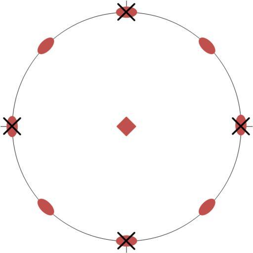 | Keywords: Stereogram tetragonal prism 422.png en Stereographic projection of a tetragonal prism 100 in the 422 symmetry point group The rotation axes are represented in red The face poles are marked by the black crosses The thin black ticks show the direction of the equivalent crystallographic axes a and b fr Projection stéréographique d'un prisme tétragonal 100 dans le groupe ponctuel de symétrie 422 Les axes de rotation sont représentés en rouge Les pôles des faces sont marqués par les croix noires Les trait fins noirs montrent la direction des axes cristallographiques équivalents a et b own Perditax 2011-06-05 Cc-zero Prisms geometry Stereographic projection in crystallography |