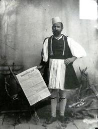 Keywords: Sterjo Postalina, ilindenski vojvoda.jpg mk Илинденскиот војвода Сте јо Посталина со весник во аката Во 1905 година неговата чета беше опколена и уништена од ту скиот аске но Сте јо се извлече и се п иклучи кон четата на војводата Кошка Јанина 1909 en Ilinden voivode Sterjo Postalina with a newspaper in his hand In 1905 his regiment was surrounded and destroyed by the Turkish army but Sterjo survived and joined the regiment of voivode Koshka Ioannina 1909 DARM archive 1909 The State Archives of the Republic of Macedonia DARM Bitola Department Creator Yanaki and Milton Manaki other versions Custom license marker 2016 09 20 PD-Macedonia Wikipedian in Residence at DARM Photographs by Manaki Brothers Steryo Apostolina |