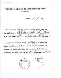 | Keywords: Sternfeld Sorbonne Certificate 1929.jpg en Enrolment certificate of Ari Sternfeld at the Faculty of Science at the Sorbonne in the 1928-1929 academic year ru Сп авка о зачислении А и Ште нфельда на факультет естественных наук в Со бонну на 1928-1929 учебный год личный а хив Эльви а Ште нфельд 2007 Cc-zero Униве ситеты Па ижа Uncategorized 2015 April 10 |
