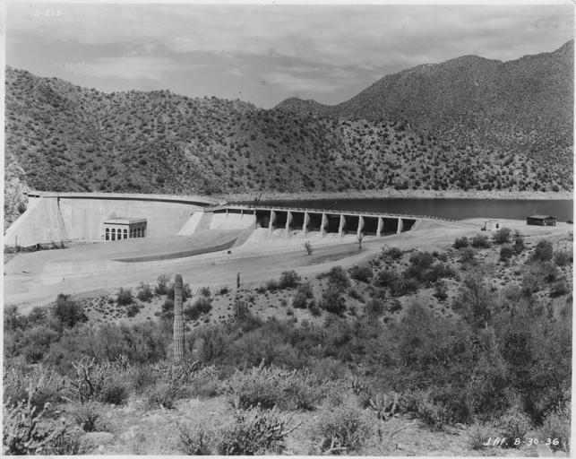 Keywords: "Stewart Mountain Dam. View from right abutment showing completed spillway channel." - NARA - 294640.jpg Scope and content Photograph from Volume One of a series of photo albums documenting the construction of Roosevelt Dam Stewart Dam and other related work on the Salt River Project in Arizona General notes 294640 Local identifier Department of the Interior Bureau of Reclamation Engineering and Research Center 05/18/1981 - 03/04/1988 NARA's Rocky Mountain Region Denver NRGA Building 48 Denver Federal Center West 6th Avenue and Kipling Street Denver CO 80225-0307 1936-08-30 Record group Record Group 115 Records of the Bureau of Reclamation 1889 - 2008 Record group ARC 444 Photograph albums compiled 1903 - 1972 Series ARC 293611 File unit File unit ARC Variant control numbers NAIL Control Number NRG-115-CONSTPHO85006-SALTRIVERS214 Other versions <gallery> File Stewart_Mountain_Dam _View_from_right_abutment_showing_completed_spillway_channel _-_NARA_-_294640 tif tif File Stewart_Mountain_Dam _View_from_right_abutment_showing_completed_spillway_channel _-_NARA_-_294640 jpg jpg </gallery> NARA-cooperation PD-USGov Stewart Mountain Dam 1936 |
