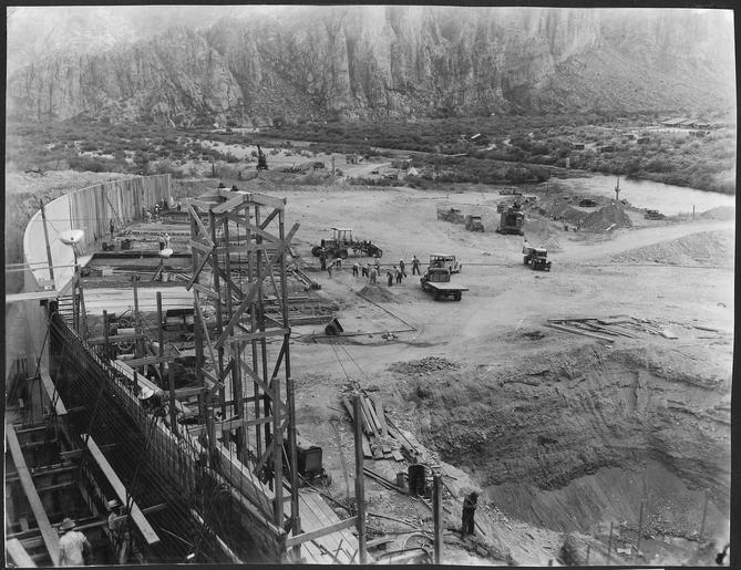 Keywords: "Stewart Mountain Dam. View from left end of gate operating platform, channel excavation about 95^ complete." - NARA - 294643.tif Scope and content Photograph from Volume One of a series of photo albums documenting the construction of Roosevelt Dam Stewart Dam and other related work on the Salt River Project in Arizona General notes 294643 Local identifier Department of the Interior Bureau of Reclamation Engineering and Research Center 05/18/1981 - 03/04/1988 NARA's Rocky Mountain Region Denver NRGA Building 48 Denver Federal Center West 6th Avenue and Kipling Street Denver CO 80225-0307 1936-04-28 Record group Record Group 115 Records of the Bureau of Reclamation 1889 - 2008 Record group ARC 444 Photograph albums compiled 1903 - 1972 Series ARC 293611 File unit File unit ARC Variant control numbers NAIL Control Number NRG-115-CONSTPHO85006-SALTRIVERS259 yes Other versions <gallery> File Stewart_Mountain_Dam _View_from_left_end_of_gate_operating_platform _channel_excavation_about_95 _complete _-_NARA_-_294643 tif tif File Stewart_Mountain_Dam _View_from_left_end_of_gate_operating_platform _channel_excavation_about_95 _complete _-_NARA_-_294643 jpg jpg </gallery> NARA-cooperation PD-USGov Stewart Mountain Dam NARA TIF images with categorized JPGs |