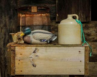 Keywords: still life duck decoy moonshine jug barrel decoy cajun home louisiana bayou rustic