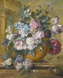 Keywords: Still Life of Summer Flowers in a Bowl, with Butterflies by Jacobus Linthorst.jpg en Still Life of Summer Flowers in a Bowl with Butterflies and a Bird's Nest Upon a Marble Ledge a Temple Beyond by Jacobus Linthorst 1796 oil on canvas 78 by 63 3 cm Sotheby's Jacobus Linthorst 1796 Jacobus Linthorst PD-old-100 |