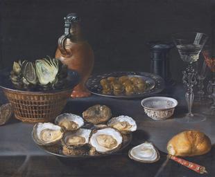 Keywords: Still-life with artichokes, attributed to David Rijckaert (II).jpg attributed to s 1610 oil wood cm 55 5 61 5 Institution National Museum Wrocław accession number VIII-2282 object history ProvenanceEvent 1942 transfer Silesian Museum of Fine Arts Wrocław S Siebs Collection Berlin credit line ed Andrzej Chudzikowski 1960 Malarstwo europejskie katalog zbiorów Muzeum Narodowe pp 22-24 http //ocdn eu/images/pulscms/ZmE7MDMsMjA4LDAsMCwx/e7c6139a4f3ae7753c9d6161d95d7617 jpg ocdn eu See below 13696 PD-old-100 Silesian Museum of Fine Arts David Rijckaert II 17th-century paintings in the National Museum in Wrocław Flemish paintings in the National Museum in Wrocław 1610s still life paintings Artichokes in art Oyster dishes Still life paintings with oysters Pedestal plates in art Still life paintings of seafood Still life paintings of tableware Still-life paintings of glassware 17th-century still life paintings of food Baroque still life paintings in Poland 17th-century still life paintings in Poland 17th-century oil paintings in Poland Salt in art Drinking glasses in paintings Earthenware Salt containers tableware Pottery in painting |