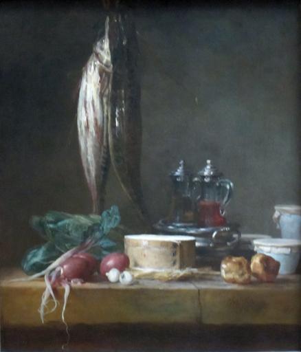 View Original:Still_Life_with_Fish,_Vegetables,_Gougères,_Pots,_and_Cruets_on_a_Table_by_Jean-Baptiste_Siméon_Chardin.jpg (2116x2476)