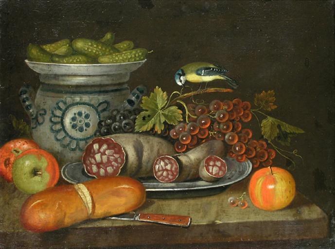 | Keywords: Still life with sausages.jpg century 17 Oil canvas cm 34 45 object history credit line accession number http //www hampel-auctions com/ PD-old-100 17th-century unidentified painters Cucumbers in art Still-life paintings with apples Paintings of knives Paintings of grapes Sausages in art Boudin Still life paintings of birds Oil still life paintings 17th-century paintings from Italy 17th-century paintings not categorised by year Location of museum or gallery missing Pickled cucumbers Still life paintings of bread 17th-century still life paintings of food 17th-century still life paintings of fruits Images from Hampel Auctions |