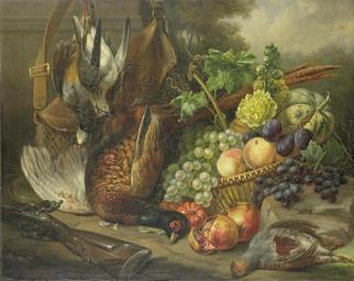 | Keywords: Stilleven Rijksmuseum SK-C-115.jpeg nl Stilleven met fruit en gevogelte In het midden een rietenmand met druiven pruimen perziken een meloen granaatappels en een tak stokroos Hierbij liggen ook verschillende dode vogels waaronder een fazant Links op de voorgrond een jachtgeweer linksachter een weitas drager Height cm 72 drager Width cm 91 5 exhibition history Institution Rijksmuseum Technique oil canvas object history Acquisition 1885-06-30 object type Potential derivatives exist check http //commons wikimedia org/w/index php search Rijksmuseum+SK-C-115 this search PD-US PD-old Data and photography rights All data and all images made available through the API are either in the public domain or are subject to a CC0 license https //www rijksmuseum nl/en/api/terms-and-conditions-of-use cc-zero place of creation http //www rijksmuseum nl/collectie/SK-C-115 Stilleven Q17341871 Uploaded with GWToolset Stilleven Rijksmuseum SK-C-115 http //www rijksmuseum nl/media/assets/SK-C-115 Images uploaded by Fæ Images from the Rijksmuseum Dutch 19th-century paintings in the Rijksmuseum Amsterdam Elisabeth Iosetta Hoopstad |