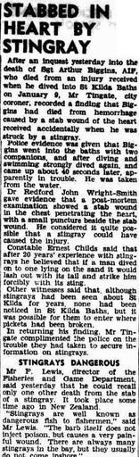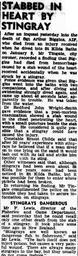 | Keywords: Stingray attack 1945.jpg en from the http //www nla gov au/ndp/ National Library Australian newspapers digitisation program which are pre-1955 so no copyright The service includes newspapers published in each state and territory from the 1800s to the mid-1950s when copyright applies http //nla gov au/nla news-article1099665 The Argus 1945-02-06 PD-Australia Dasyatidae National Library of Australia - Australian Newspapers Service | ||||