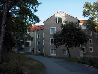 Keywords: Stjarnhus.jpg en House in Bergshamra Solna Sweden sv Ett av de s k stjärnhusen i Bergshamra Solna Husen byggdes 1953-55 arkitekter Sven Backström och Leif Reinius 2011-06-18 own Salcional cc-zero Uploaded with UploadWizard Bergshamra