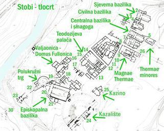 Keywords: Stobi tlocrt.gif en plan of archeological site own vitek 2008-06-29 Stobi Paionia Ancient Roman archaeological sites Maps of cities in the Republic of Macedonia Maps in Croatian
