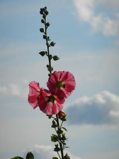 Keywords: stock rose sky clouds flower garden pink