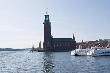 Keywords: stockholm town hall nobel prize prize-giving ceremony sweden scandinavia swedish bell tower mirroring
