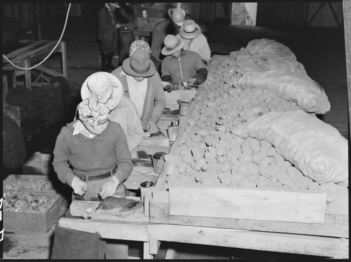| Keywords: Stockton, California. Cutting potato seed on an industrialized farm where, before evacuation, all w . . . - NARA - 536034.jpg Scope and content The full caption for this photograph reads Stockton California Cutting potato seed on an industrialized farm where before evacuation all work was done by persons of Japanese ancestry Evacuees will be housed in War Relocation Authority centers for the duration General notes 536034 Local identifier 210-G-A57 Department of the Interior War Relocation Authority 02/16/1944 - 06/30/1946 NARA-Author Lange Dorothea 1895-1965 Photographer 1372774 <br /> Still Picture Records Section Special Media Archives Services Division NWCS-S National Archives at College Park 8601 Adelphi Road College Park MD 20740-6001 1942-04-10 Record group Record Group 210 Records of the War Relocation Authority 1941 - 1989 Record group ARC 537 Central Photographic File of the War Relocation Authority compiled 1942 - 1945 Series ARC 536000 File unit File unit ARC Variant control numbers NAIL Control Number NWDNS-210-G-A57 Other versions <gallery> File Stockton _California _Cutting_potato_seed_on_an_industrialized_farm_where _before_evacuation _all_w_ _ _ _-_NARA_-_536034 tif tif File Stockton _California _Cutting_potato_seed_on_an_industrialized_farm_where _before_evacuation _all_w_ _ _ _-_NARA_-_536034 jpg jpg </gallery> NARA-cooperation PD-USGov Dorothea Lange Stockton Assembly Center |