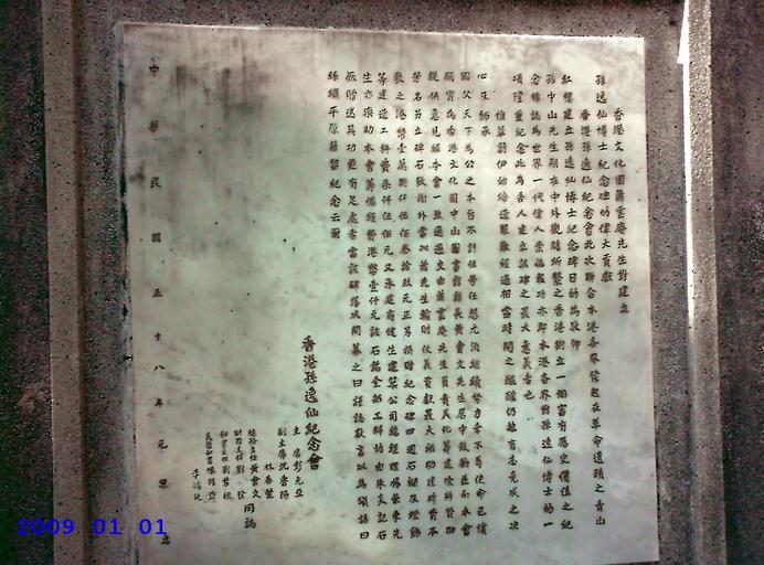 Keywords: Stone 03.JPG watermarked en Wording 3 on Dr Sun Yat Sen's Monument Tuen Mun Hong Kong zh-hk å±¯é– ä¸å±±å…¬å ‹çš„碑文之三 own hkgalbert 2009-01-01 Hung Lau