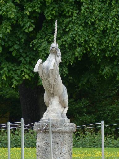 Keywords: stone figure fig unicorn horse ross hellbrunn salzburg austria
