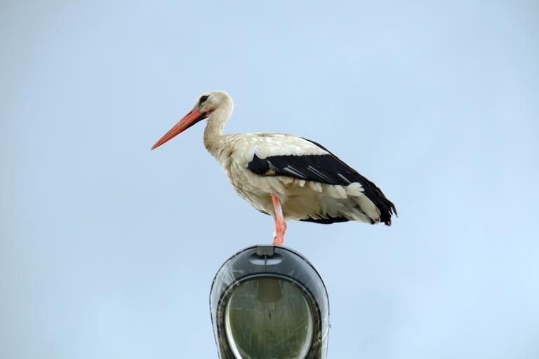 Keywords: stork storks bird animal birds meadow large beak white stork rattle stork adebar summer close street light bill black and white feather plumage