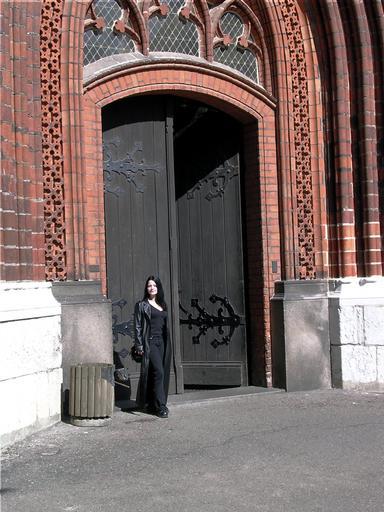 Keywords: stralsund church portal gothic woman girl person