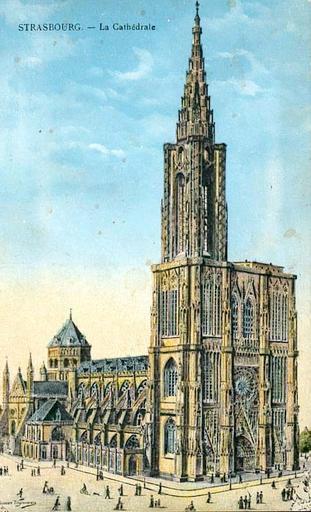 Keywords: Strassburger Muenster Ottomar Weymann.jpg Postkartenzeichnung des Straßburger Münsters von Ottomar Weymann PD-old Historic views of Notre-Dame de Strasbourg Ottomar Weymann