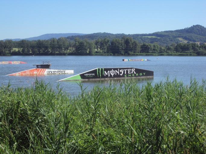 Keywords: Stráž vodní lyžaři 1.JPG cs Vodní lyžaři v Stráži pod Ralskem own Zákupák 2013-07-21 Vodní nádrž Stráž pod Ralskem Water skiing