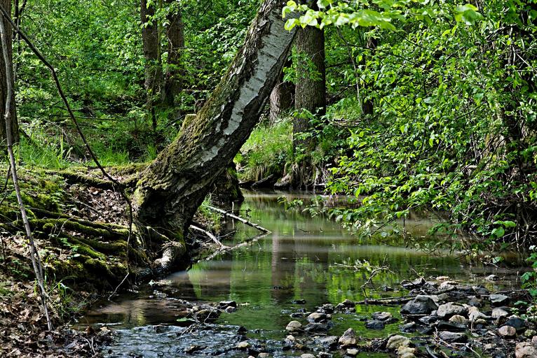 Keywords: stream bank change stones water surface trough stony flowing trees forest sun shadow tributary stropnický reflection hdr
