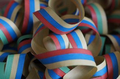 Keywords: streamer celebration festival decoration carnival colorful new year's eve party ringed partyaritkel fasnet red green yellow chaos color structure texture decorated band children blue