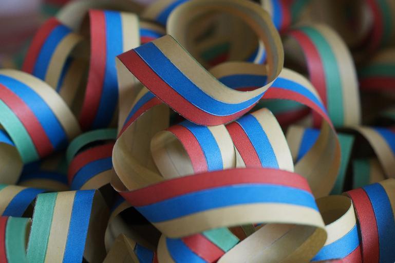 Keywords: streamer celebration festival decoration carnival colorful new year's eve party ringed partyaritkel fasnet red green yellow chaos color structure texture decorated band children blue