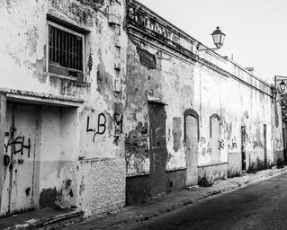 Keywords: street abandoned ruin architecture stone facade houses abandonment ancient old building stone house lantern lamp via city impaired urban input window brick
