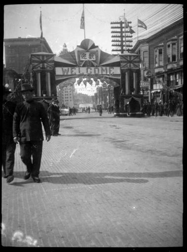 | Keywords: blackandwhite monochrome photo border outdoor black and white DESCRIPTION: Chinatown - Chinese Arch on East Pender Street in Chinatown, Vancouver, looking west towards Carrall VPL Accession Number: 30363 Date: 1912 Photographer/Studio: Dominion Photo Co. SUBJECTS: Arches, Chinese Canadians More information on our historical photograph collection: www.vpl.ca/historicalphotos DESCRIPTION: Chinatown - Chinese Arch on East Pender Street in Chinatown, Vancouver, looking west towards Carrall VPL Accession Number: 30363 Date: 1912 Photographer/Studio: Dominion Photo Co. SUBJECTS: Arches, Chinese Canadians More information on our historical photograph collection: www.vpl.ca/historicalphotos |