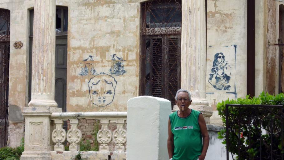 Keywords: street art graffiti street urban man cigar cuba havana city architecture