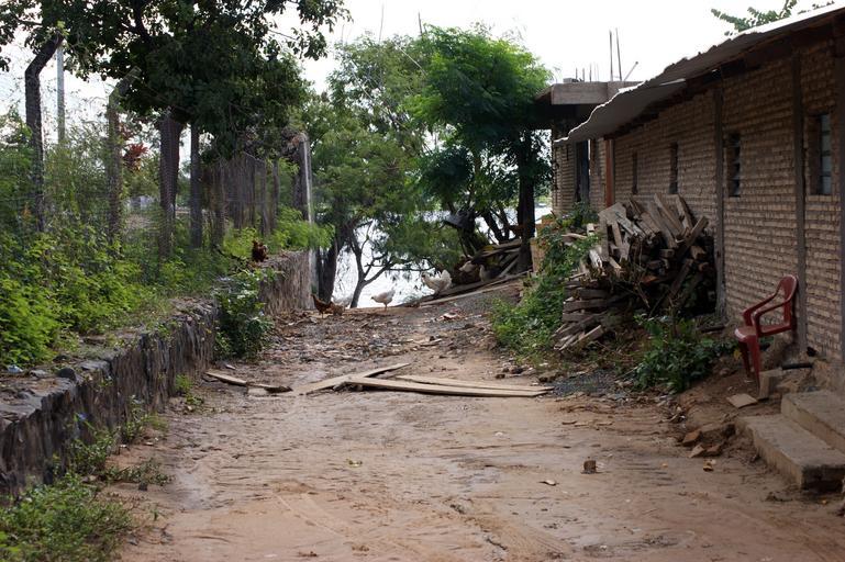 Keywords: street dead end chickens building fence tree paraguay south america