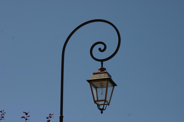 Keywords: street lamp post happy france light city summer blue sky close-up day life old illuminated tourist place horizontal scene