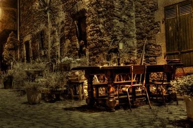 Keywords: street lane night old pavement pierre floor lamp colors facade