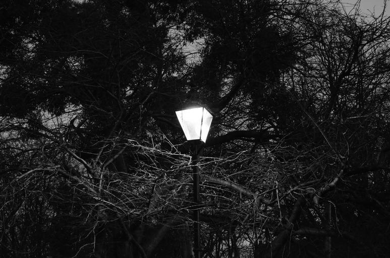Keywords: street lighting black white dark tree