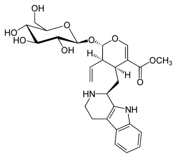 Keywords: Strictosidine.svg en Strictosidine; Isovincoside de Strictosidin; Isovincosid Own Yikrazuul 2008-06-20 Aldehydes Carboxylate esters Glycosides Heterocyclic compounds Oxygen heterocycles Indoles Alkaloids Methyl esters