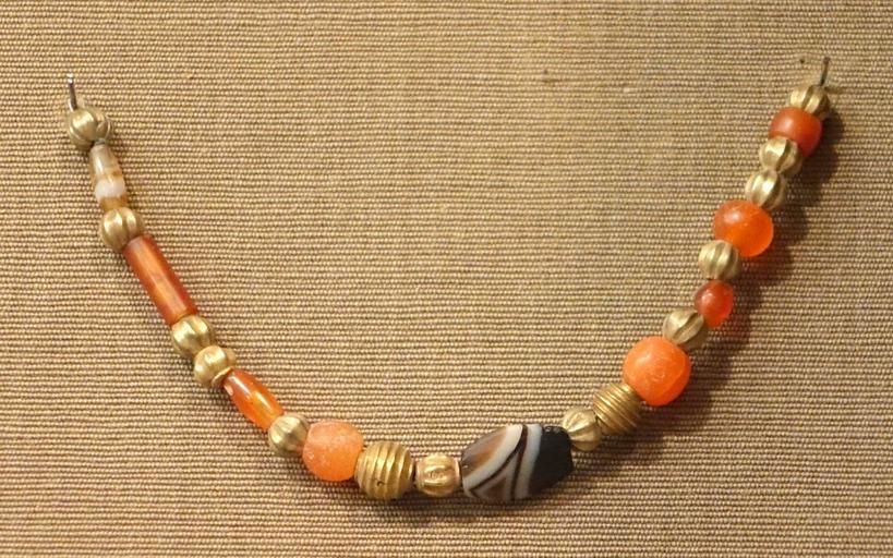 | Keywords: String of beads, Nippur, Area TB, Ur III period, 2100-2000 BC, gold, carnelian, agate - Oriental Institute Museum, University of Chicago - DSC07314.JPG en Exhibit in the Oriental Institute Museum University of Chicago Chicago Illinois USA This work is old enough so that it is in the public domain Photography was permitted in the museum without restriction 2014-08-22 15 03 58 own Daderot other versions cc-zero Uploaded with UploadWizard Jewellery of Mesopotamia in the Oriental Institute Museum Ur III antiquities in the Oriental Institute Museum |