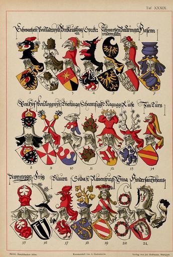 | Keywords: Ströhl Heraldischer Atlas t39 3.jpg  Hugo Gerhard Ströhl Heraldischer Atlas Stuttgart 1899 Tafel 39 Proben aus den Wappenrollen der Geschlechtergesellschaft Zur Katze in Konstanz 1547 Tafel http //austria-forum org/wbg/ heraldischeratl00de1899kfu austria-forum org 1899 Creator Hugo Gerhard Ströhl 1919 Heraldischer Atlas Ströhl Coats of arms from Konstanz |