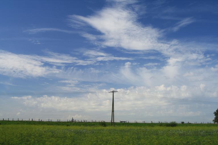 Keywords: strommast sky meadow landscape nature clouds field grass summer