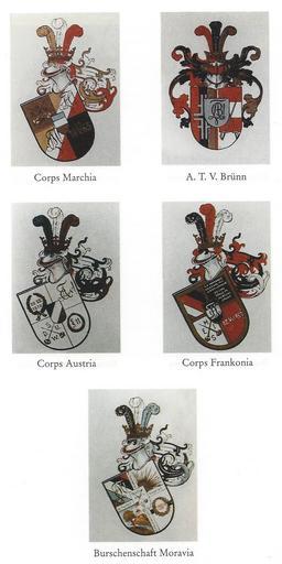 | Keywords: Studentenverbindungen Brünn.jpg Wappen der Studentenverbindungen an der Technischen Hochschule Brünn Einst und Jetzt Jahrbuch des Vereins für corpsstudentische Geschichtsforschung Bd 44 1999 S 91 um 1920 unbekannt Zusammenstellung von Lothar Selke Anonymous-EU Coats of arms of student fraternities Senioren-Convent zu Brünn Burschenschaft Coats of arms from Brno German Technical University in Brno | ||||