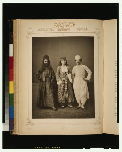 | Keywords: Studio Portrait of Models Wearing Traditional Clothing from the Province of Iles d'Archipel (Islands of the Archipelago), Ottoman Empire WDL337.png  Artwork ru Лоне  а и де fr Hamdi Bey Osman 1842-1910 en Hamdi Bey Osman 1842-1910 zh 劳奈 玛丽娅·德 pt Hamdi Bey Osman 1842-1910 ar حمدي بيك عثمان 1842-1910 es Hamdi Bey Osman 1842-1910 ru Студийный по т ет моделей в т адиционной одежде п овинции Iles d'Archipel Ост ова а хипелага Оттоманская импе ия fr Portrait en studio de modèles portant des vêtements traditionnels de la province des Îles d'Archipel îles de l'archipel Empire Ottoman en Studio Portrait of Models Wearing Traditional Clothing from the Province of Iles d'Archipel Islands of the Archipelago Ottoman Empire zh Iles d'Archipel(群岛) 份穿传统 饰模特的画室肖像,奥斯曼 国 pt Retrato de Estúdio de Modelos Vestindo Trajes Tradicionais da Província de Iles d'Archipel ilhas do Arquipélago Império Otomano ar صورة شخصية في الاستوديو لعارضين يرتدون ملابس تقليدية من مقاطعة إيل دارشيبيل جزر الأرخبيل ، الامبراطورية العثمانية ru Паскаль Себа был известным фотог афом создавшем множество фотог афий для своих клиентов как в Османской импе ии так и в западных ст анах Студия Себа выпустила несколько коллекций фотог афий этног афической тематики и т адиционных костюмов некото ые из кото ых были п оизведены в сот удничестве с художником и а хеологом Османом Хамди Бей Данная фото еп одукция взята из совместно созданной ими книги под названием <i> Les costumes populaires de la Turquie en 1873 </i> Популя ные костюмы Ту ции в 1873 году Данный альбом в кото ом описываются этнические костюмы населения всех  егионов Османской импе ии был создан по заказу османского п авительства для  еждуна одной выставки 1873 года в Вене Создатели альбома  Хамди Бей и Викто  а и де Лоней п авительственный служащий исто ик-любитель и художник ф анцузского п оисхождения  а фотог афии изоб ажены т адиционные костюмы сп ава налево х истианина п оживающего в  агоссе Фамагуста Кип х истианки п оживающей в  агоссе и г еческого монаха из монасты я в Тчико  асположенного около Лефке Лефка Кип <br>Х истиане; Одежда и платье; Г упповые по т еты;  онахи; Реп одукции по т етов; Женщины fr Pascal Sébah était un photographe ottoman prolifique et bien connu qui a travaillé à la fois pour des clients ottomans et occidentaux Le studio de Sébah a produit nombre de collections de photographies ethnographiques et de costumes certaines durant une importante collaboration avec le peintre et archéologue Osman Hamdi Bey Cette épreuve photomécanique est tirée d'une telle collaboration un livre intitulé <i>Les costumes populaires de la Turquie en 1873 </i> en français dans le texte Cet album représentant les tenues ethniques de l'ensemble de l'Empire ottoman a été commandé par le gouvernement ottoman pour la Foire Internationale de Vienne en 1873 et a été dirigé par Hamdi Bey et Victor Marie de Launay un fonctionnaire ottoman historien amateur et artiste d'origine française La photographie montre les costumes traditionnels de droite à gauche d'un résident chétien de Magossa Famagusta Chypre d'une femme chrétienne de Magossa et d'un moine grec du monastère de Tchiko près de Lefke Lefka Chypre <br>Chrétiens; Vêtements et habits; Portraits de groupe; Moines; Portraits en images; Femmes en Pascal Sébah was a prolific and well-known Ottoman photographer who worked for both Ottoman and western clients Sébah s studio produced a number of collections of ethnographic and costume photos some in important collaborations with the painter and archaeologist Osman Hamdi Bey This photomechanical print is drawn from one such collaboration a book entitled <i>Les costumes populaires de la Turquie en 1873 </i> Popular costumes of Turkey in 1873 This album depicting ethnic costumes from throughout the Ottoman Empire was commissioned by the Ottoman government for the 1873 International Fair in Vienna and was authored by Hamdi Bey and Victor Marie de Launay an Ottoman official amateur historian and artist of French origin The photo depicts the traditional costumes of from right to left a Christian resident of Magossa Famagusta Cyprus a Christian woman of Magossa and a Greek monk of the Monastery of Tchiko near Lefke Lefka Cyprus <br>Christians; Clothing and dress; Group portraits; Monks; Portrait prints; Women zh Pascal Sébah 是 位多产的著名奥斯曼摄影师, 务于很多奥斯曼以及西方国家的客户  Sébah 的工 室制 过很多 关人种和 饰的照片集,其中 些是与画家兼 古学家奥斯曼·哈姆迪· 伊的重要合 结晶  这张照相制版印刷品就出自他们的合  品 <i> Les costumes populaires de la Turquie en 1873  </i>(1873 年  其流行 饰)  这部 品集描绘了整个奥斯曼 国的民族 装,是奥托曼政 为 1873 年维也纳国际贸易展 委托他们制 的,该 品集的  是哈姆迪· 