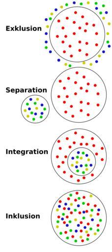 | Keywords: Stufen Schulischer Integration.svg en This graphic depicts different forms of social life between different groups/different group members de Die Grafik zeigt verschiedene Formen des Zusammenlebens zwischen unterschiedlichen Gruppen in einer Gesellschaft/unterschiedlichen Mitgliedern in einer Gruppe own WhiteHotaru 2011-06-04 Cc-zero Cc-zero Disabled people Pedagogy Sociological diagrams | ||||