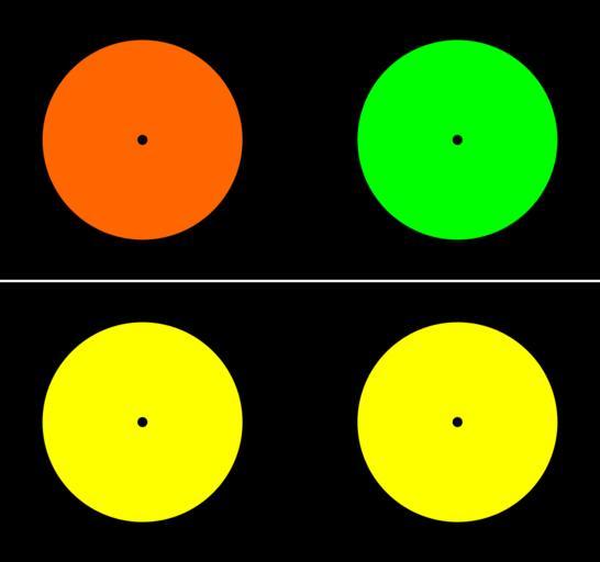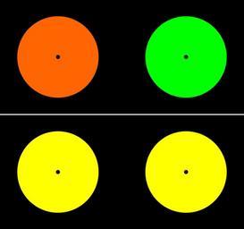 Keywords: Successive contrast.svg en Demonstration of successive contrast Concentrating the eyes on the two differently coloured orange and green circles in the top row and then looking at the bottom row can make the bottom pair of circles appear to be different colours even though they are actually both the identical shade of yellow Based on original bitmap version en Image Successive_contrast jpg This hand-written SVG version by Qef Original bitmap version by K P Miyapuram public domain 2008-07-07 en Image Successive_contrast jpg Qef Contrast illusions |