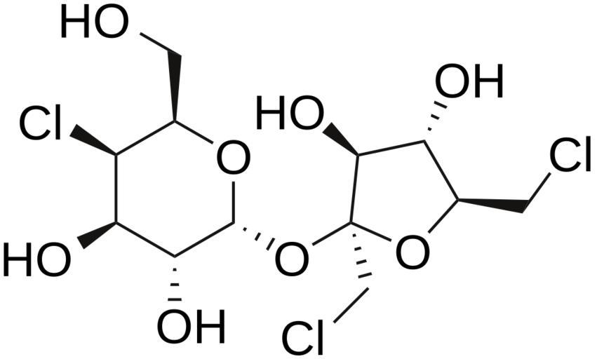 Keywords: Sucralose2.svg en 2D structure of artificial sweetener sucralose Own Harbin 2009-01-19 Sucralose