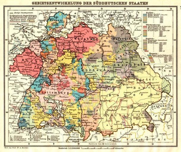 Keywords: Sueddeutsche Staaten.jpg Karte der süddeutschen Staaten Quelle Schulatlas für höhere Lehranstalten Erscheinungsjahr 1911 Ort Leipzig Verlag Wagner und Debes PD-old Old maps of Bavaria Old maps of Rhineland-Palatinate Old maps of Baden-Württemberg Old maps of Hesse Wagner Debes |