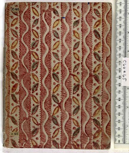| Keywords: Sueno de Feliciano de Silua - Upper cover (c40e45).jpg Style All over design; Caption Upper cover; Colour Multi-coloured; Edge Unspecified exhibition history Decorative Technique Decorated paper; Cover Material Paper paste Unspecified object history Text 1544; Unspecified; Unspecified object type Cc-zero place of creation Binding England place of discovery Unspecified British Library image http //www bl uk/catalogues/bookbindings/LargeImage aspx RecordId 020-000002032 ImageId ImageId 40621 Copyright BL Sueno de Feliciano de Silua Uploaded with GWToolset Sueno de Feliciano de Silua - Upper cover c40e45 http //www webarchive org uk/bldatasets/bindings/5492_4 jpg 19th-century bookbinding Bookbinding British Library Bookbindings |