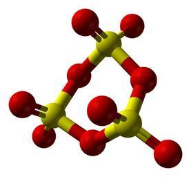 Keywords: Sulfur-trioxide-trimer-from-xtal-1967-3D-balls-A.png Ball-and-stick model of the sulfur trioxide trimer SO<sub>3</sub> <sub>3</sub> i e S<sub>3</sub>O<sub>9</sub> from the crystal structure X-ray crystallographic data from http //dx doi org/10 1107/S0365110X6700009X Acta Cryst 1967 22 48-51 Model constructed in http //www crystalmaker com/ CrystalMaker 8 1 Image generated in http //accelrys com/products/discovery-studio/visualization/discovery-studio-visualizer html Accelrys DS Visualizer Own 2009-05-26 Ben Mills Benjah-bmm27 Images by Ben Mills Sulfur trioxide Trimers Six-membered rings Cyclic inorganic compounds |