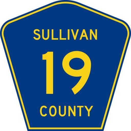 | Keywords: Sullivan County 19.svg 450 mm by 450 mm 18 in by 18 in county shield made to the specifications of the 2004 edition of Standard Highway Signs sign M1-6 Uses the Roadgeek 2005 fonts United States law does not permit the copyrighting of typeface designs and the fonts are meant to be copies of a U S Government-produced work anyway Own 2009-06-27 Carpetmaster101 Own work all rights released Public domain Diagrams of county route markers with county name 0019 19 number | ||||
