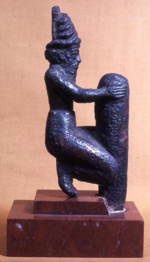 | Keywords: Sumerian - Deity Holding a Foundation Peg - Walters 54790 - Profile.jpg A deity wearing a divine horned headdress kneels with a foundation peg inscribed with King Gudea's name Though the inscription is mostly defaced it was probably dedicated to the Ningirsu god of the city of Lagash ca 2100 BC Neo-Sumerian cast bronze cm 17 7 4 3 7 2 accession number 54 790 7006 Joseph Brummer New York Henry Walters city Baltimore Walters Art Museum Henry Walters Acquired by Henry Walters 1923 Inscription includes name of King Gudea place of origin France Walters Art Museum license Ancient Near East art in the Walters Art Museum Art of Sumer Media contributed by the Walters Art Museum needs category review |