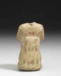 Keywords: Sumerian - Headless Male Figures Wearing Kanaches - Walters 214 - Back.jpg Ancient Sumerians dedicated statues of themselves to their gods placing them before the divine image in the temple The posture of the votive statues with hands clasped against the chest ensured that they remained in constant prayer 3000 BC Early Dynastic limestone cm 8 3 accession number 21 4 27415 Edgar J Banks date and mode of acquisition unknown Henry Walters Baltimore 1929 mode of acquisition unknown Walters Art Museum Henry Walters Acquired by Henry Walters 1929 place of origin Ur in present-day Iraq Walters Art Museum license Ancient Near East art in the Walters Art Museum Art of Sumer Media contributed by the Walters Art Museum needs category review