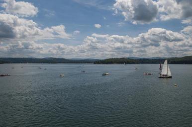 Keywords: summer holidays lake water solina sailboat nature tourism travel clouds holiday rest blue