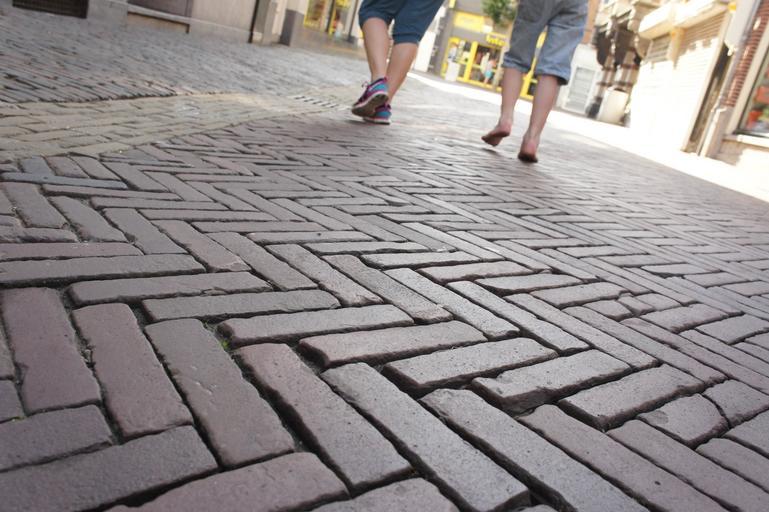 Keywords: summer legs barefoot city herringbone stones away road netherlands holland